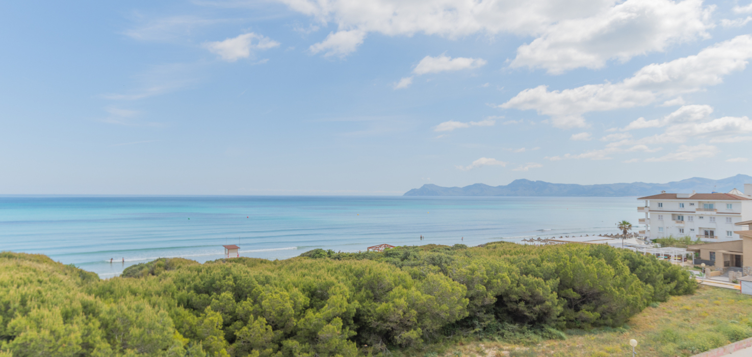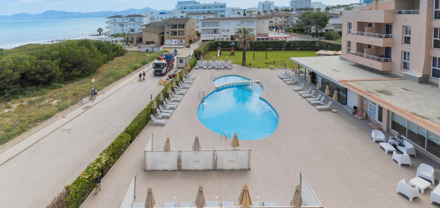 Frente al mar y con acceso directo a la playa, nuestro apartahotel en Can Picafort ofrece apartamentos con terraza y vistas al mar. Incluye piscina, gimnasio y restaurante con desayuno buffet y cocina a la carta. Ideal para quienes buscan comodidad con el Mediterráneo como protagonista.